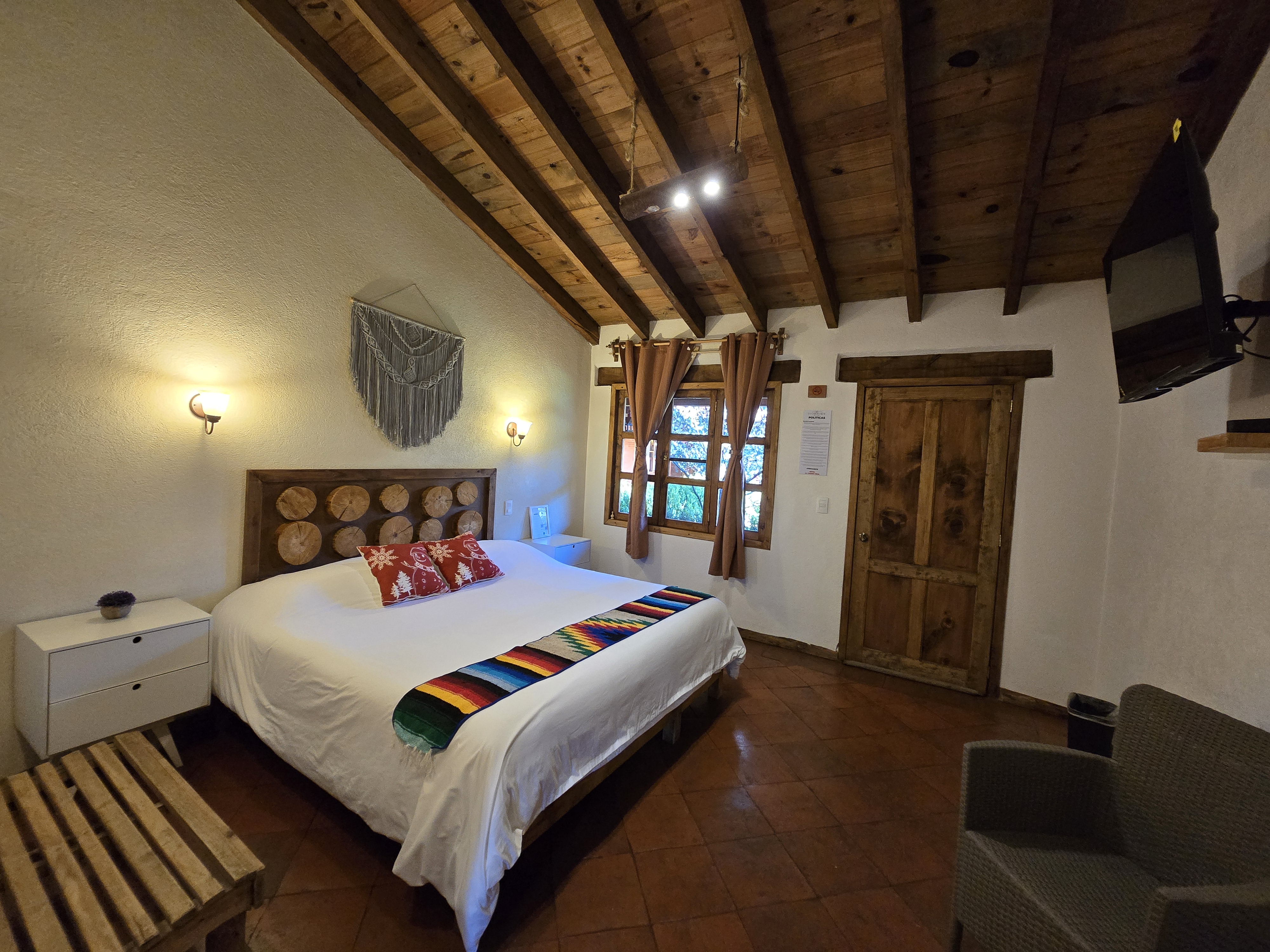 Cuatro habitaciones que cuentan con dos camas queen, calenton, pantallas de 50 pulgadas, servicio de streaming, sala, terraza privada, servicio de cafetera y snaks.